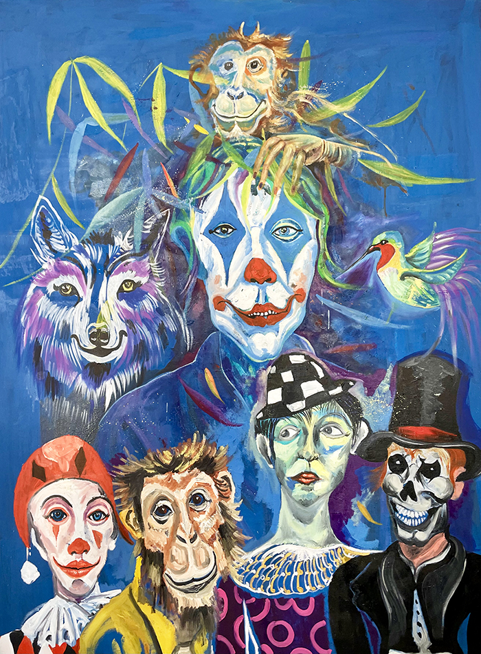» Der Berliner Maler Florian Schulz erschafft eine „surreale Welt“ mit schwarzem Humor, Maskeraden, mystischer Theatralik oder Versuchen der Selbstverortung zwischen Melancholie und Darstellungslust innerer Bühnenauftritte des Selbst. Gespenstische Gesellschaften, verirrte Gruppierungen und Einzelfiguren bilden den Kern seiner erzählerischen Malerei, die geprägt ist von einer intensiven, subversiven Kraft und einer malerischen Dichte. Florian Schulz wurde 1976 geboren, lebt und arbeitet in Berlin.
